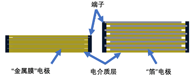 薄膜電容啊,說白了就是一種用紙或者一些聚合物做成的靜電器件。這些材料會形成很薄的片,跟電極材料混在一起就成了電容。人們說的“薄膜電容”,就是指這種用這種工藝做出來的任何器件。而“薄膜”這個詞指的是那些介電材料的性質。如果說“金屬”用來修飾“薄膜”,比如“金屬膜”或者“金屬化膜”,那就是更具體地指那種電極材料非常?。?0納米)的器件,通常是用真空沉積工藝做在支撐基板上的。經常使用的襯底也用作電容的介電材料,但不一定每次都是這樣。相比之下,“箔”電極電容用的電極材料就像我們家里用的鋁箔,這種材料的厚度足夠(微米數量級),可以在機械上自我支撐。